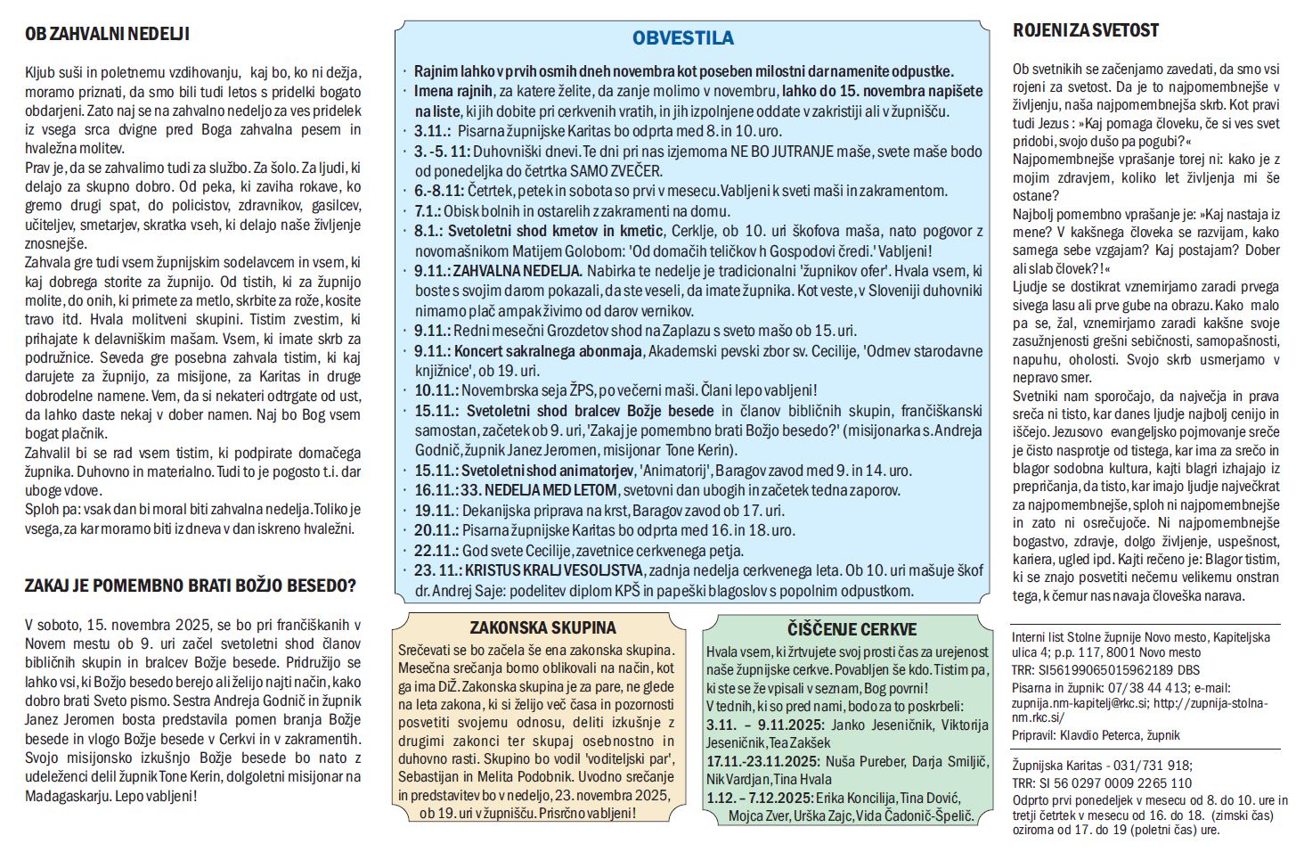 31. NEDELJA MED LETOM, 2. NOVEMBER 2025