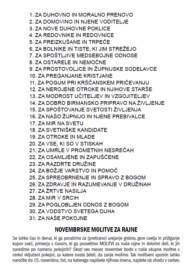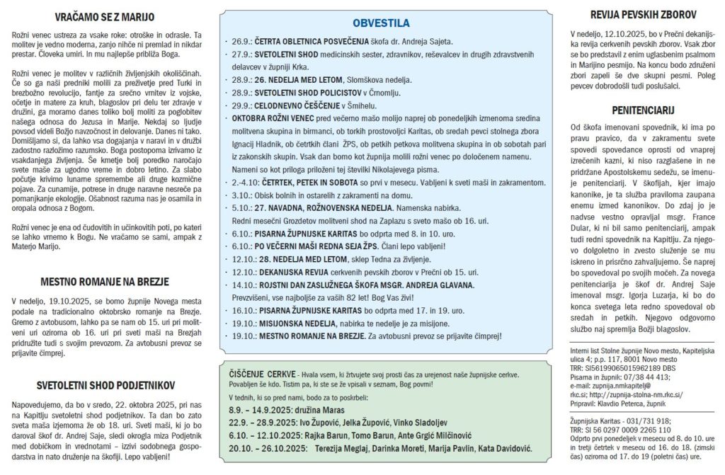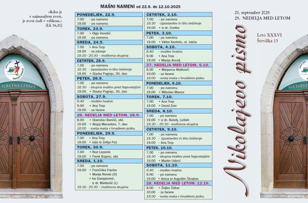 Pri izhodu si vzemite novo številko Nikolajevega pisma, ki prinaša razpored svetih maš in koristna obvestila za naslednje tri teden.