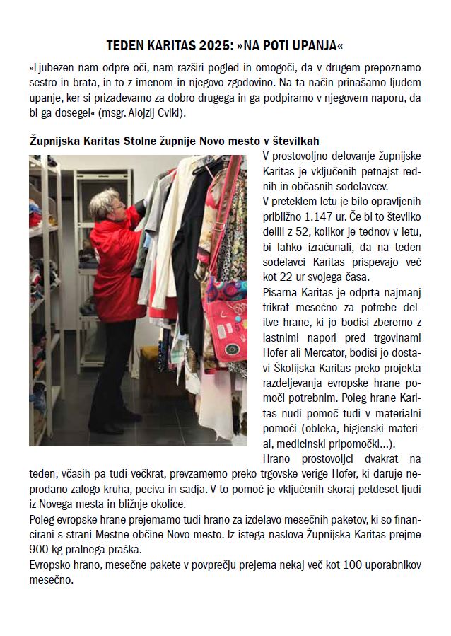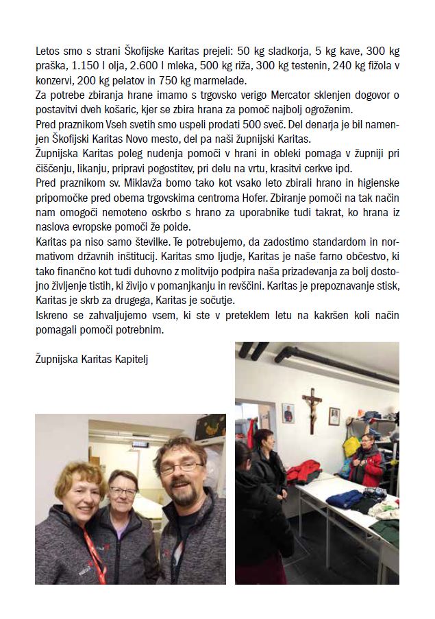 Teden od praznika Kristusa Kralja do 1. adventne nedelje je teden Karitas. Priznanje gre vsem sodelavkam in sodelavcem in zahvala vsem, ki s svojimi darovi pomagate, da je krščanska ljubezen do bližnjih ogledalo naše vere.
